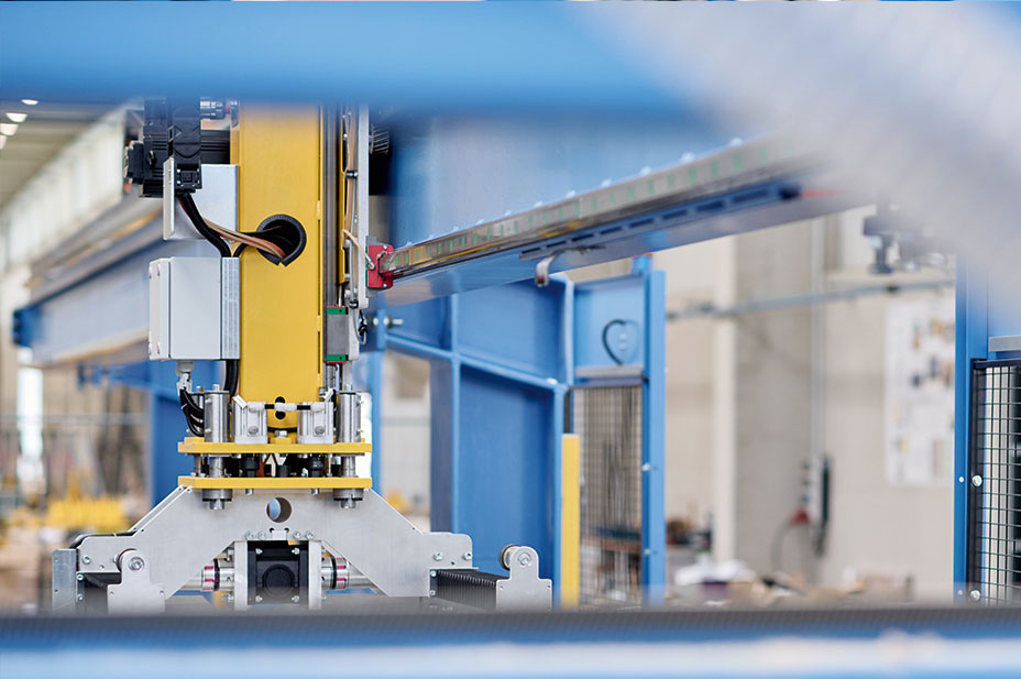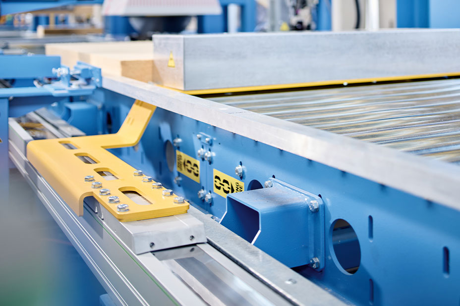 Különösen figyelemre méltó az I-Systembe épített HIWIN HD kettős tengely. A HM-B sorozat két fogazott szalagtengelyéből és egy óriási szinkronizált tengelyből álló átviteli egységként szolgál. A kettős tengely 7 méteres lökettel 15 másodperces ciklusokban szállítja a nyers paneleket a feldolgozósorra. A beépítésre kész rendszer extra hosszú futóművével és tengelyirányú nagy nyomatéki terhelhetőségével nyűgöz le.