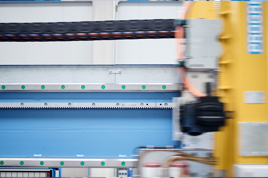 A 14 méteres teljes lökethosszúságú lineáris tengelyek és a 25 méteres profilsín-vezetők fogasléces meghajtással kombinálva valósítják meg a minimális ciklusidőhöz szükséges dinamikus mozgásokat.