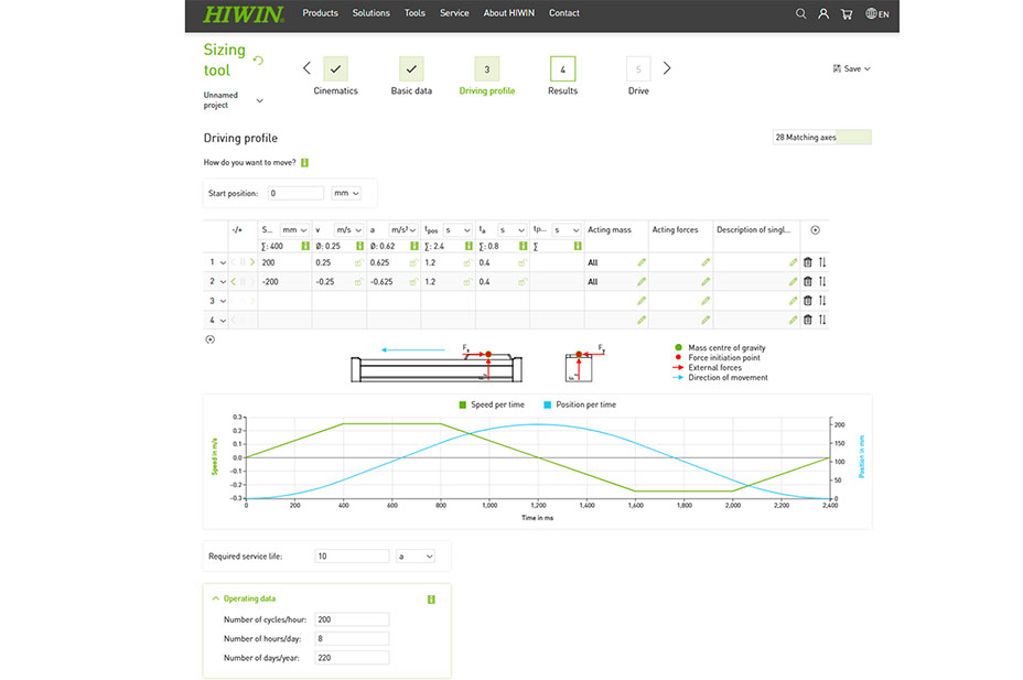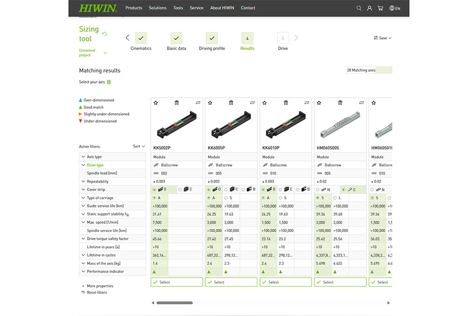 Egyszerűen hangzik, egyszerű is: a beírt alkalmazási adatok alapján az eszköz meghatározza a megfelelő tengelyeket, amelyeket összehasonlít egymással, és előre kiválasztva megjelenít. „Folyamatosan bővítjük és finomítjuk eszközeinket, hogy ügyfeleinknek a lehető leggyorsabb és legegyszerűbb hozzáférést biztosítsuk a mozgástechnológiához” - mondja Werner Mäurer, a HIWIN ügyvezető igazgatója.